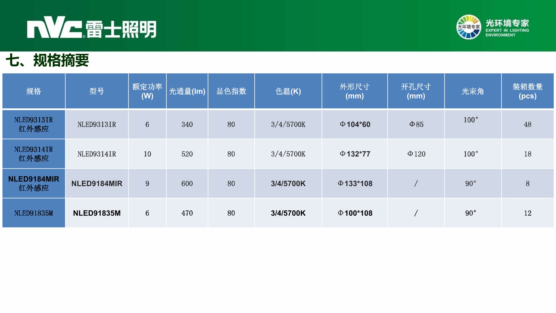 筒灯-NLED931IR&9184MIR红外感应&91835M