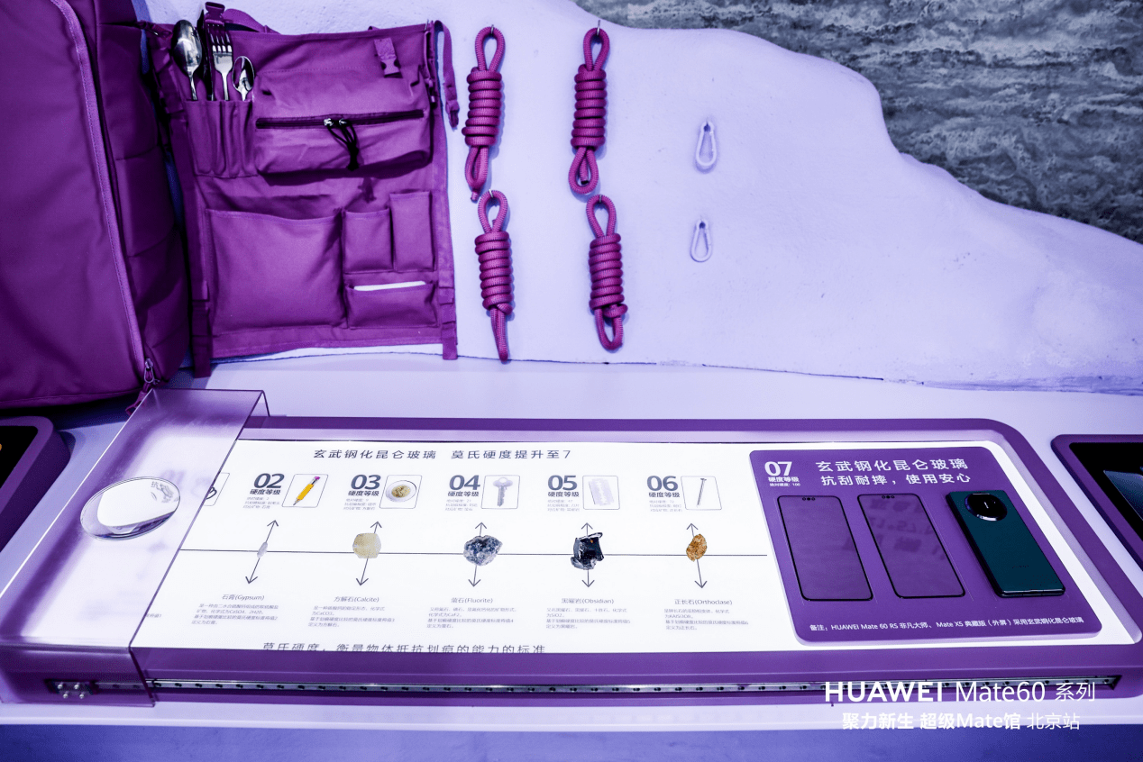 在南糯山体验区内,则展示了华为 Mate 60 系列手机第二代昆仑玻璃的耐磨性和可靠性。