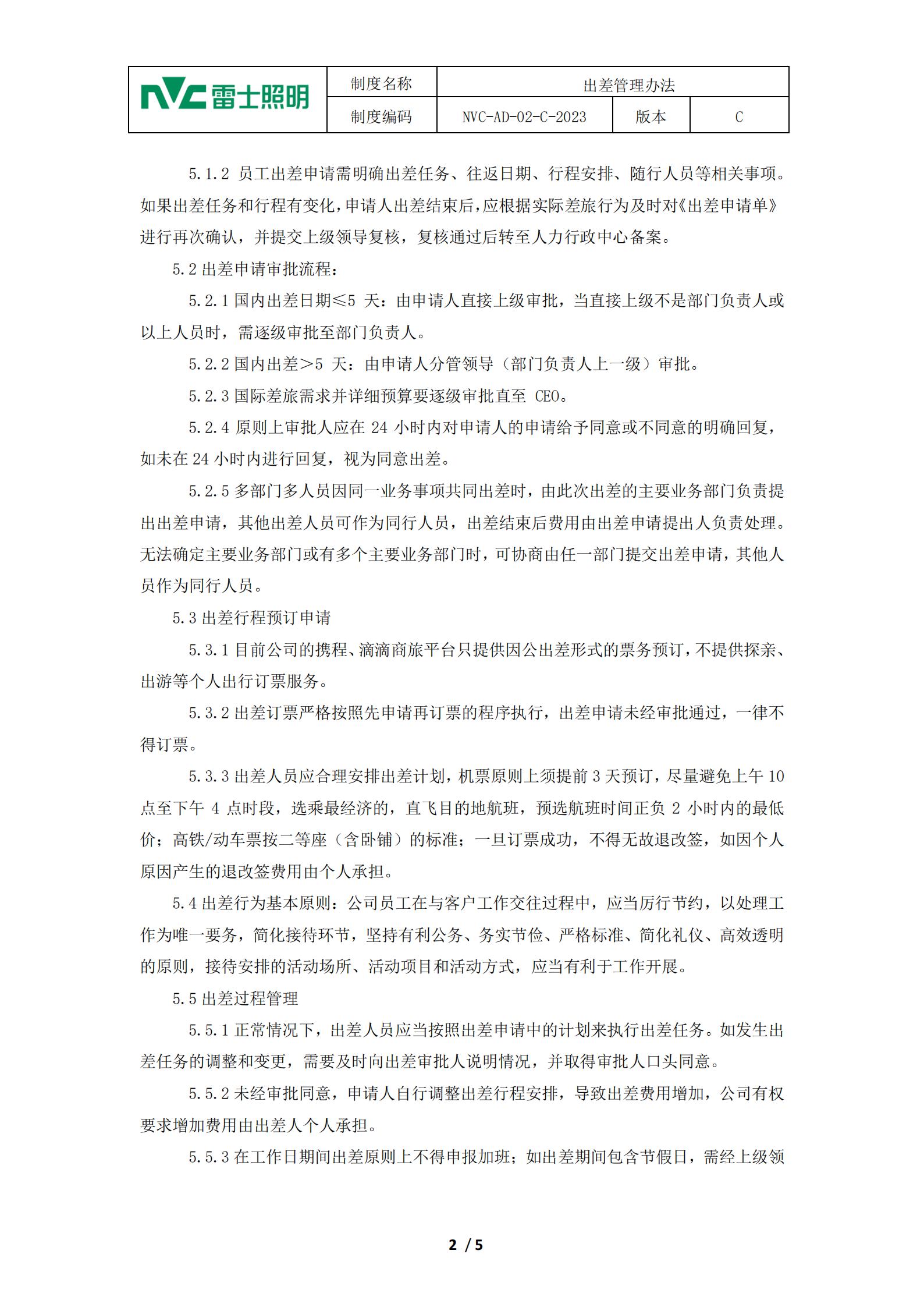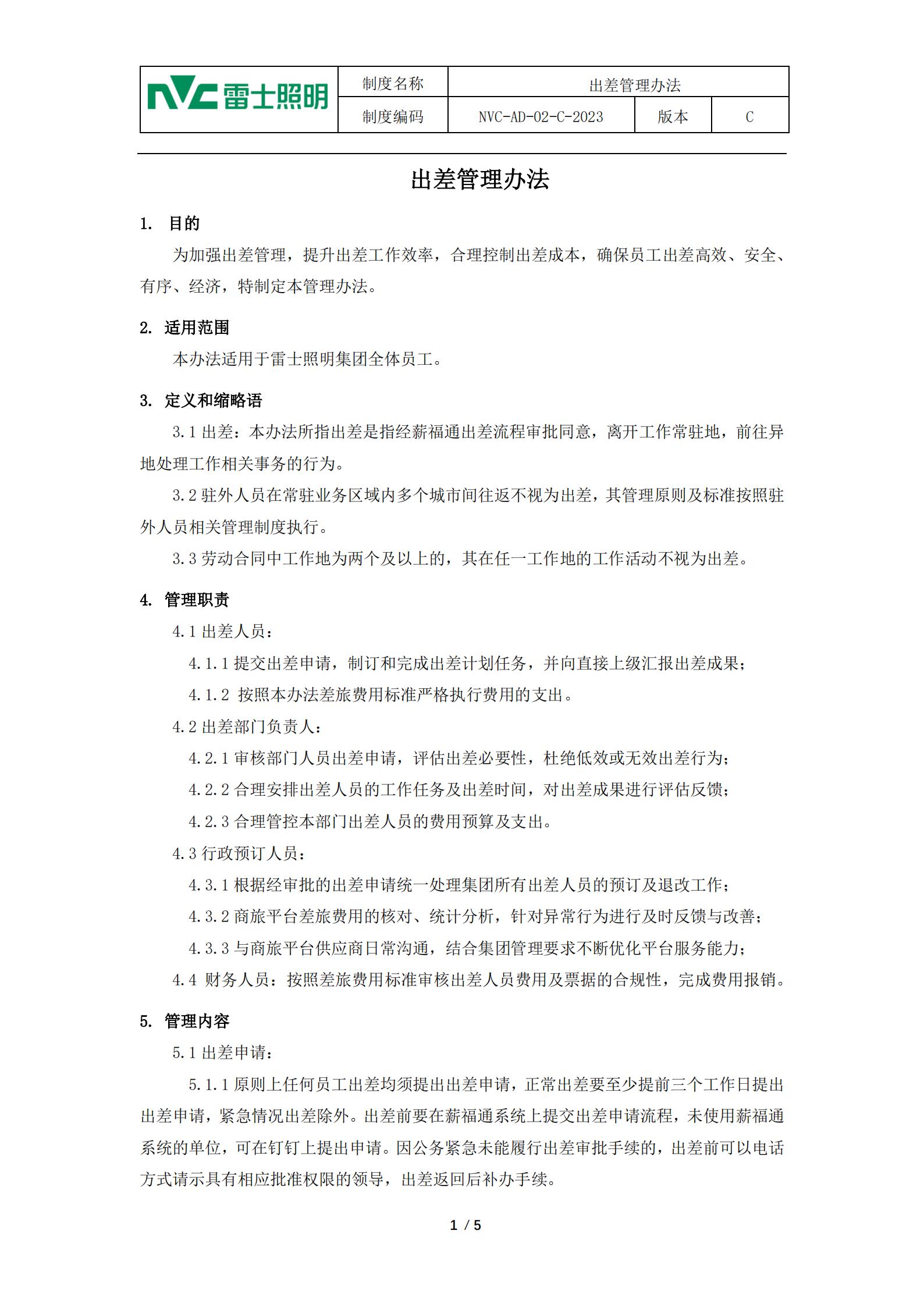 NVC-AD-02-C-2023 出差管理办法(2023修订)