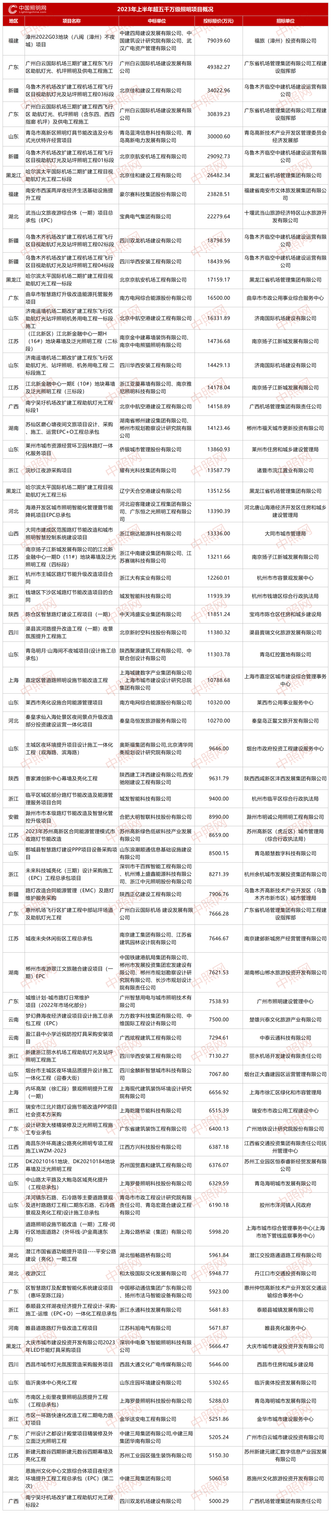 近百亿!33项超亿元!2023上半年规模超五千万照明项目汇总!