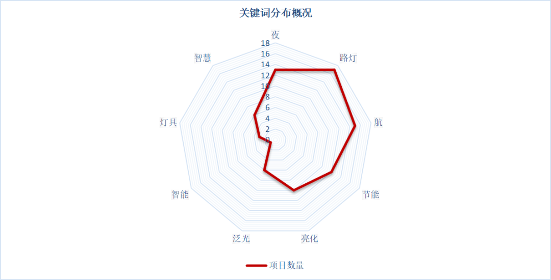 整体来看,照明项目的建设类目与政策的引导和推动方向高度吻合,夜经济建设、节能智能改造、机场建设市场在2023上半年表现出巨大发展潜力,与“夜”关键词相关的项目共计13项,“路灯”相关项目17项、机场灯光建设包含15项。