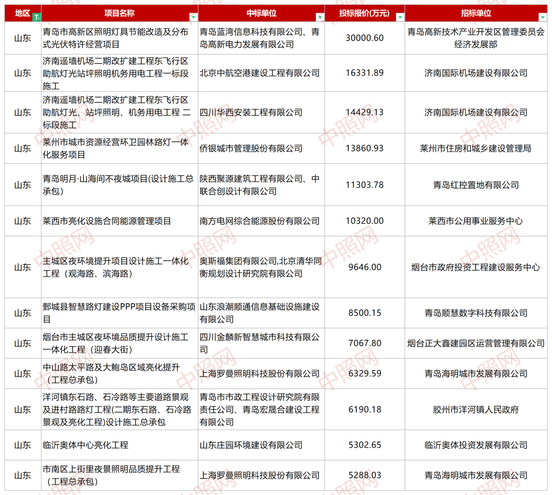 山东照明项目分布概况