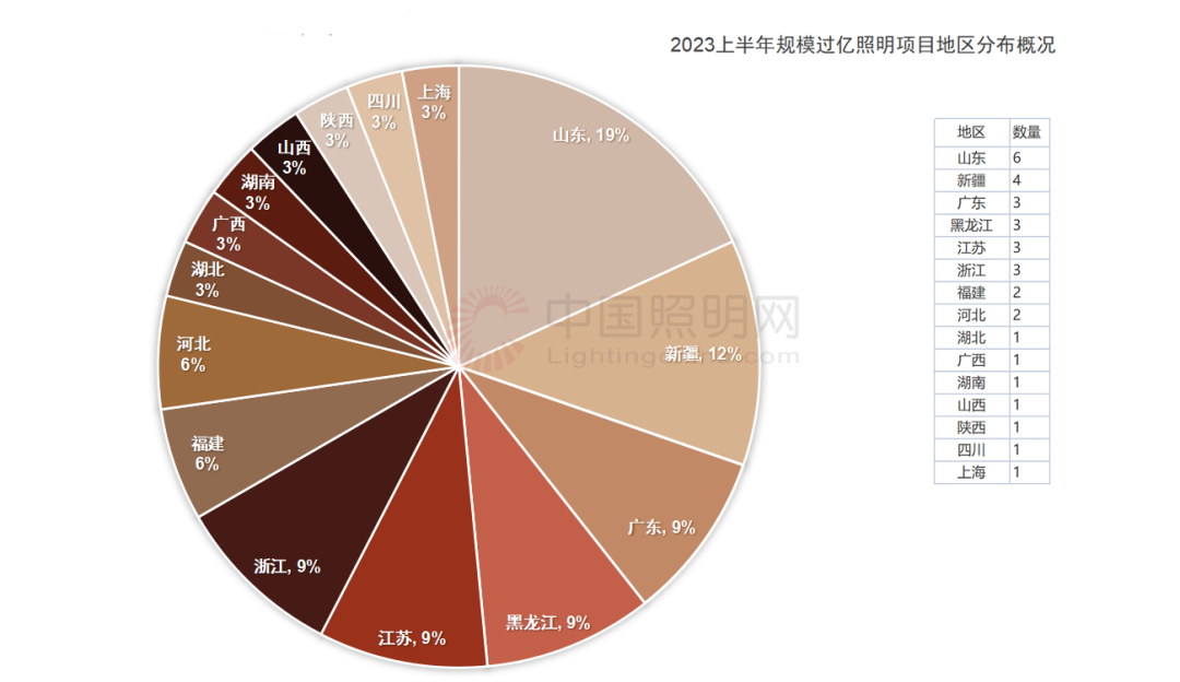 2023上半年规模超五千万照明项目地区分布概况
