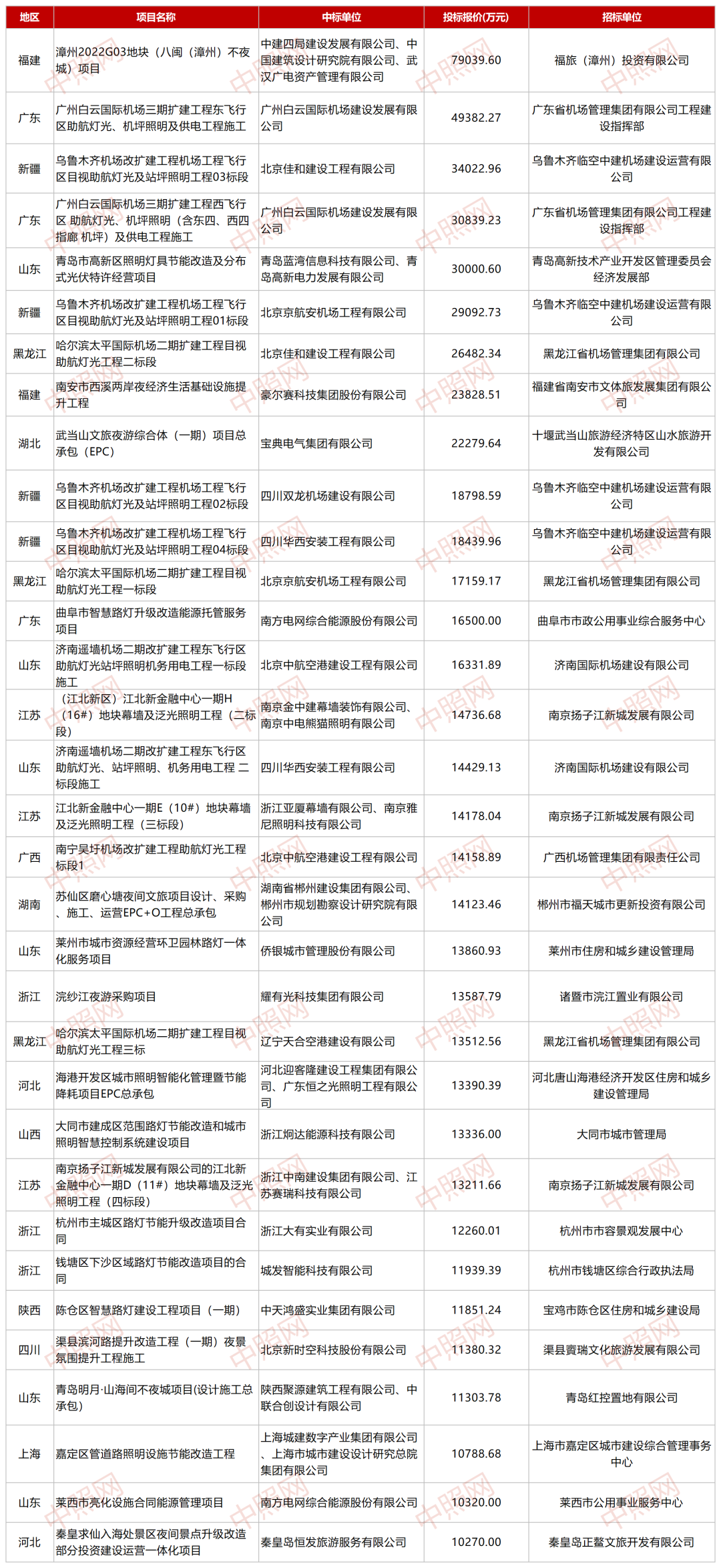 尤其值得注意的是,2023上半年规模过亿的照明项目共计33项,总规模在654836.4215万元,以中建四局建设发展有限公司、中国建筑设计研究院有限公司、武汉广电资产管理有限公司共同中标的《漳州2022G03地块(八闽(漳州)不夜城)项目》规模最大,投标报价79039.595615万元,是福建大力发展夜经济的落地表现。