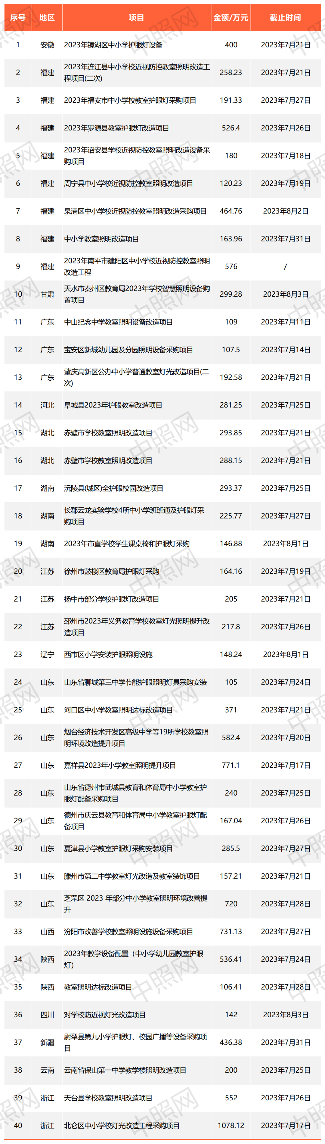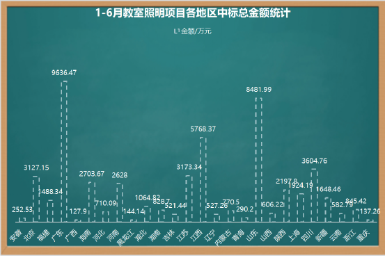 2023年1-6月教室照明项目中标约5.37亿,广东位居第一!