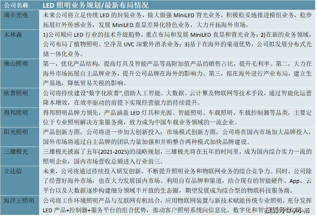 图表:2023年中国LED照明行业上市公司业务规划情况