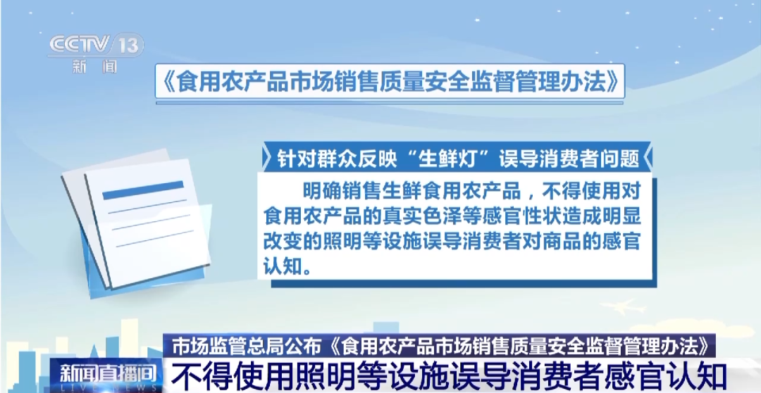 对此现象,市场监管总局22日公布《食用农产品市场销售质量安全监督管理办法》, 自2023年12月1日起施行。