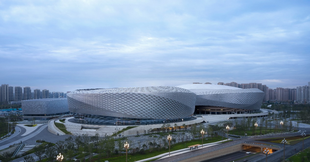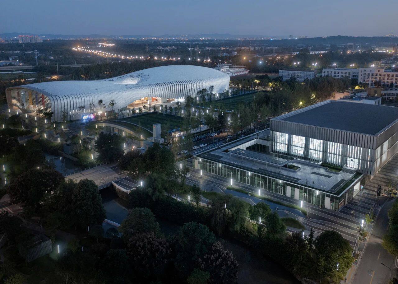 高新体育中心是第31届世界大学生夏季运动会(以下简称“大运会”)的重要比赛场馆之一,坐落于成都高新中和片区的中和一线北侧、成仁快速路西侧。项目总建筑面积约20.16万㎡,由多功能体育馆、全民健身馆、综合服务中心、体育场、垒球场、风雨球场等组成。