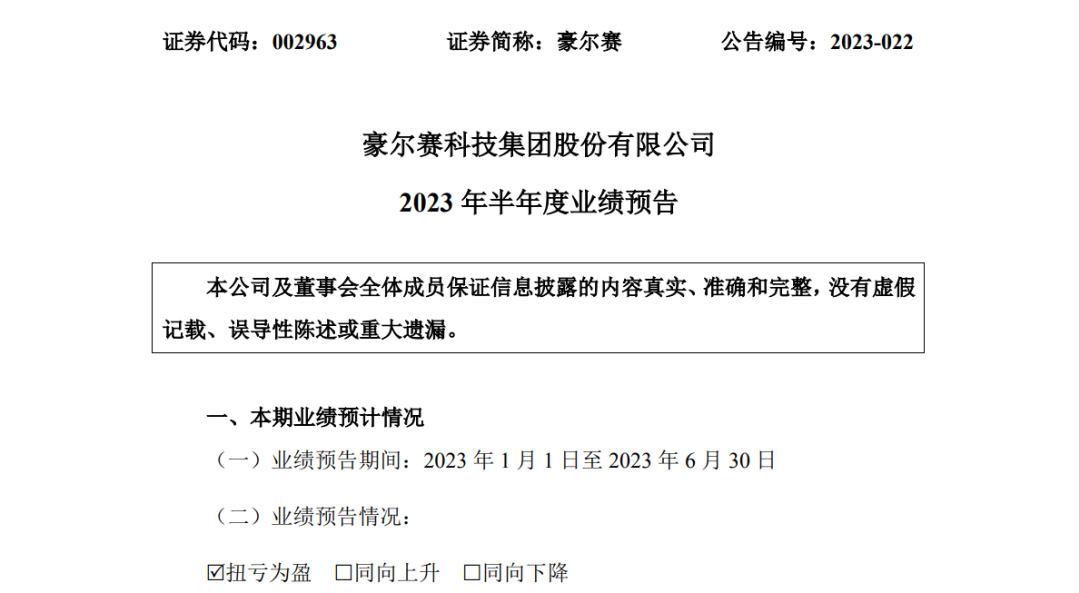 7月14日,豪尔赛发布2023年半年度业绩预告。