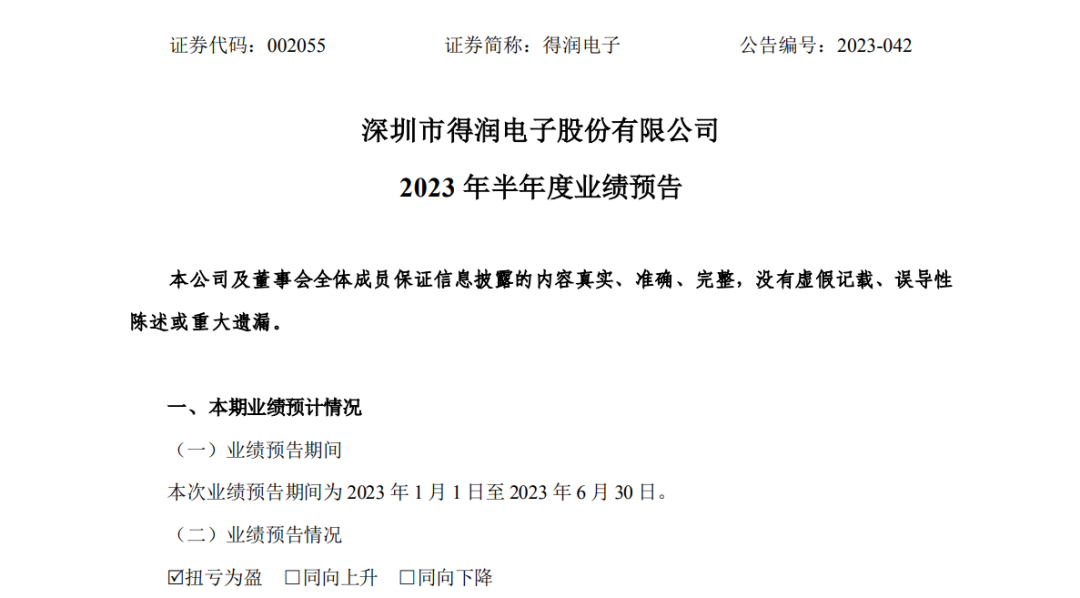 7月14日,得润电子发布2023年半年度业绩预增预告。