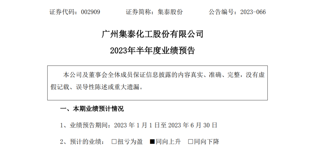 7月13日,集泰股份发布2023年半年度业绩预告。