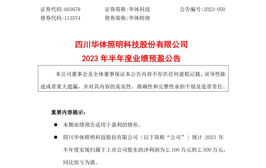 7月14日,华体科技发布2023年半年度业绩预盈公告。