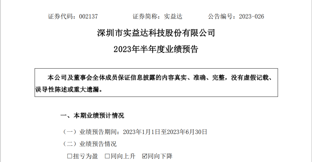 7月14日,实益达发布2023年半年度业绩预告。