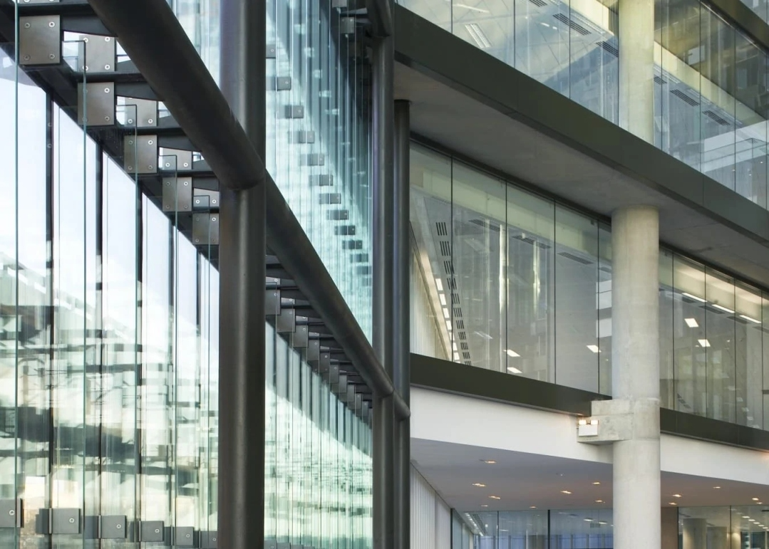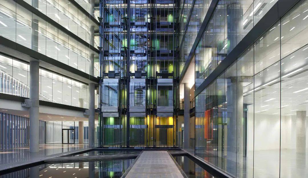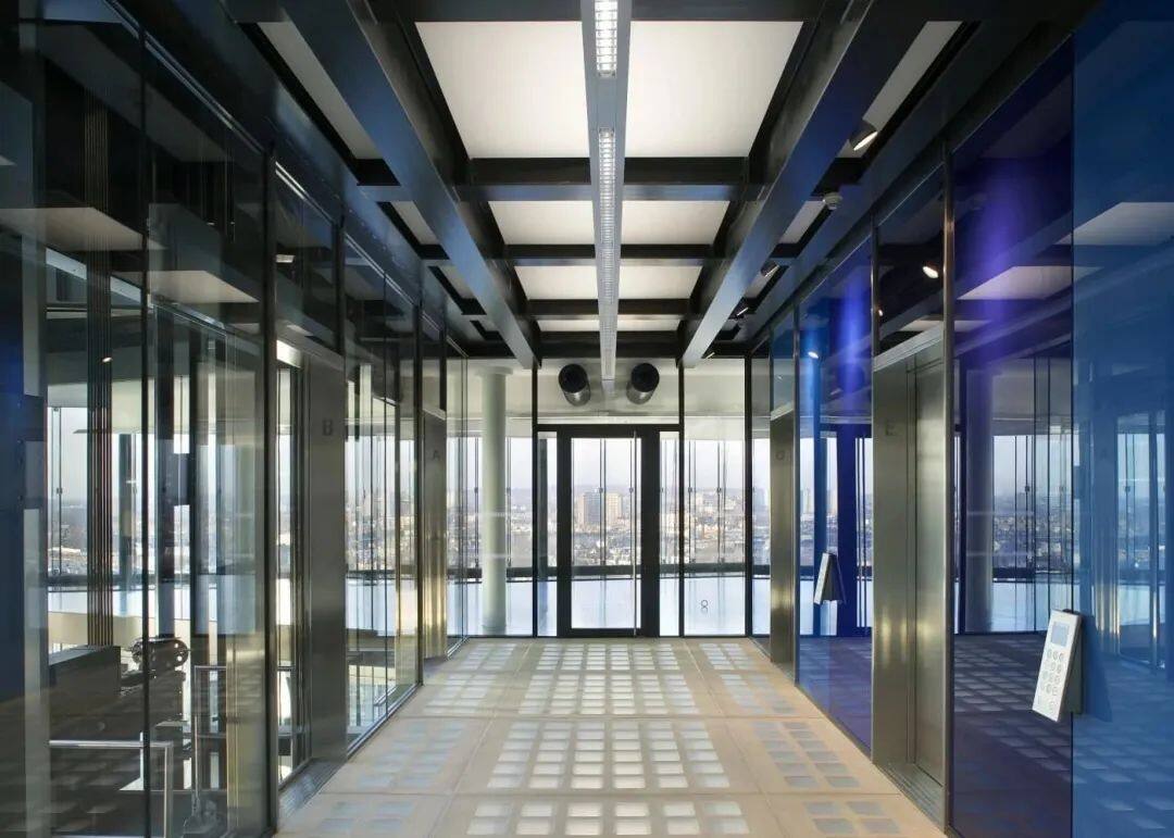进入建筑物的更深处,灯具的包装也发生了变化。它几乎完全消失,通过17层的玻璃北中庭可以看到不间断的景色。