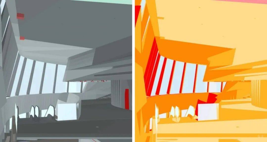 具体而言,建筑的立面和顶面空间表面应该是被点亮的,而人眼可见的空间里不应该出现灯具。无论人们是在空间中行走,还是从室外观赏建筑,都能感受到光线对空间的表达,而不会受到灯具的干扰。