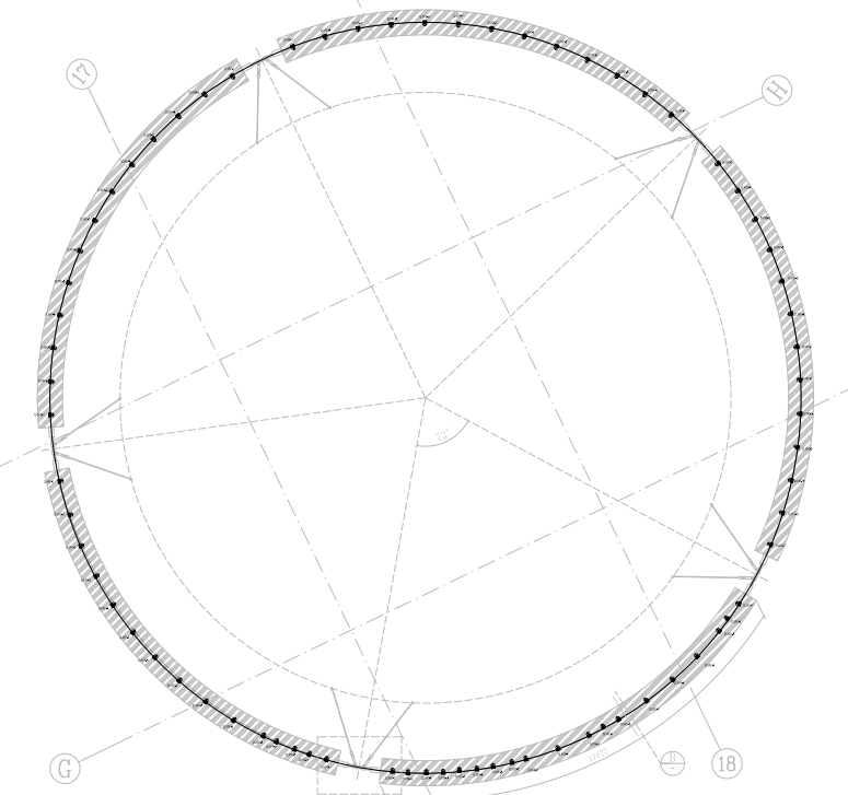 天花大部分位置的补光是通过在吊环顶部安装了吊环上照投光灯来实现的。考虑到天花中央部分的照明需求不是很强烈,并且天花本身还具有一定的倾斜度,我们根据不同的位置选择了三种不同参数的灯具:分别是20瓦24度角、20瓦50度角和40瓦50度角的灯具。总计有73套灯具,它们被均匀地布置在吊环顶部。这些灯具都可以通过0~10V的调光系统进行场景设置,以满足不同的照明需求。
