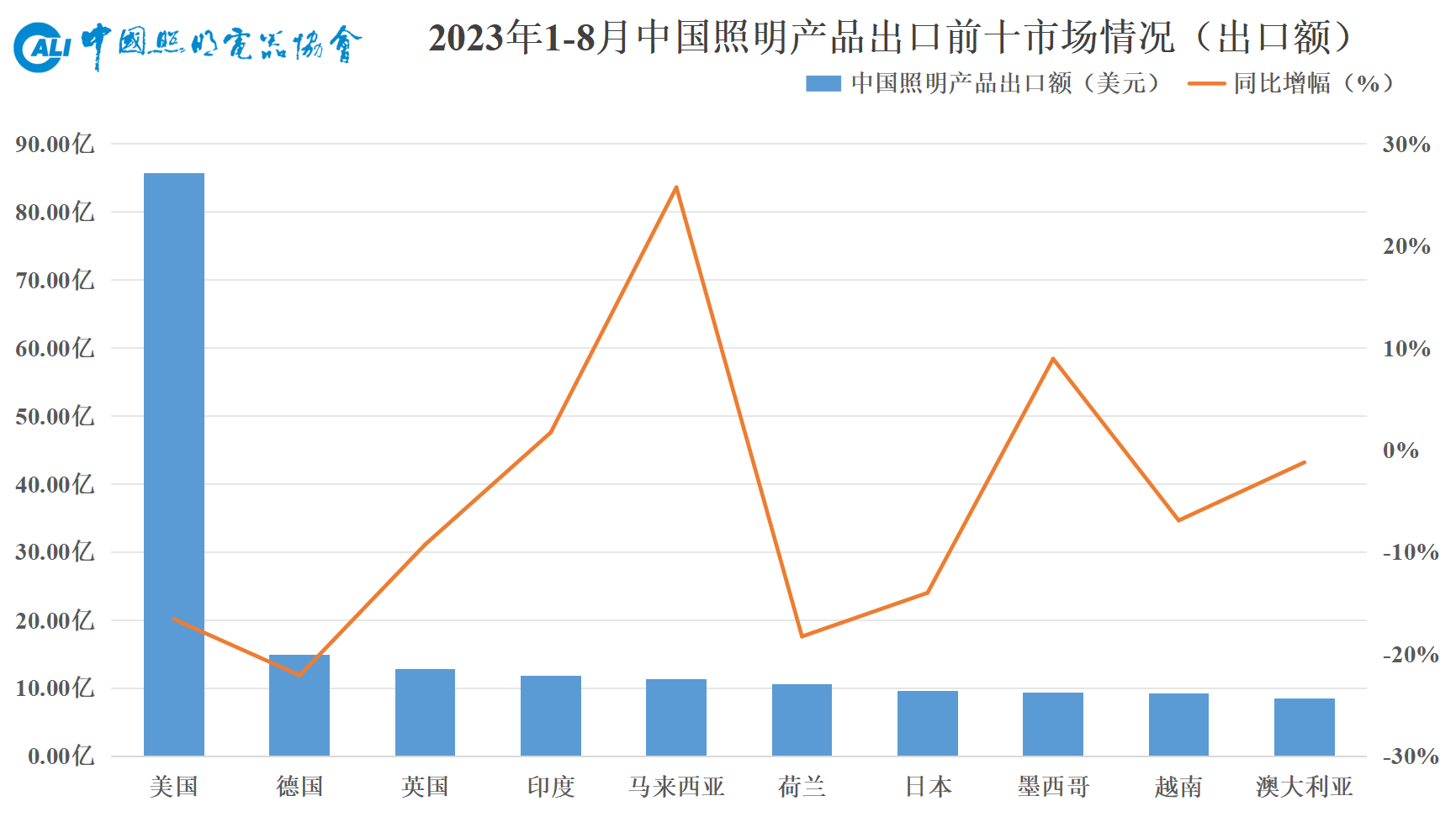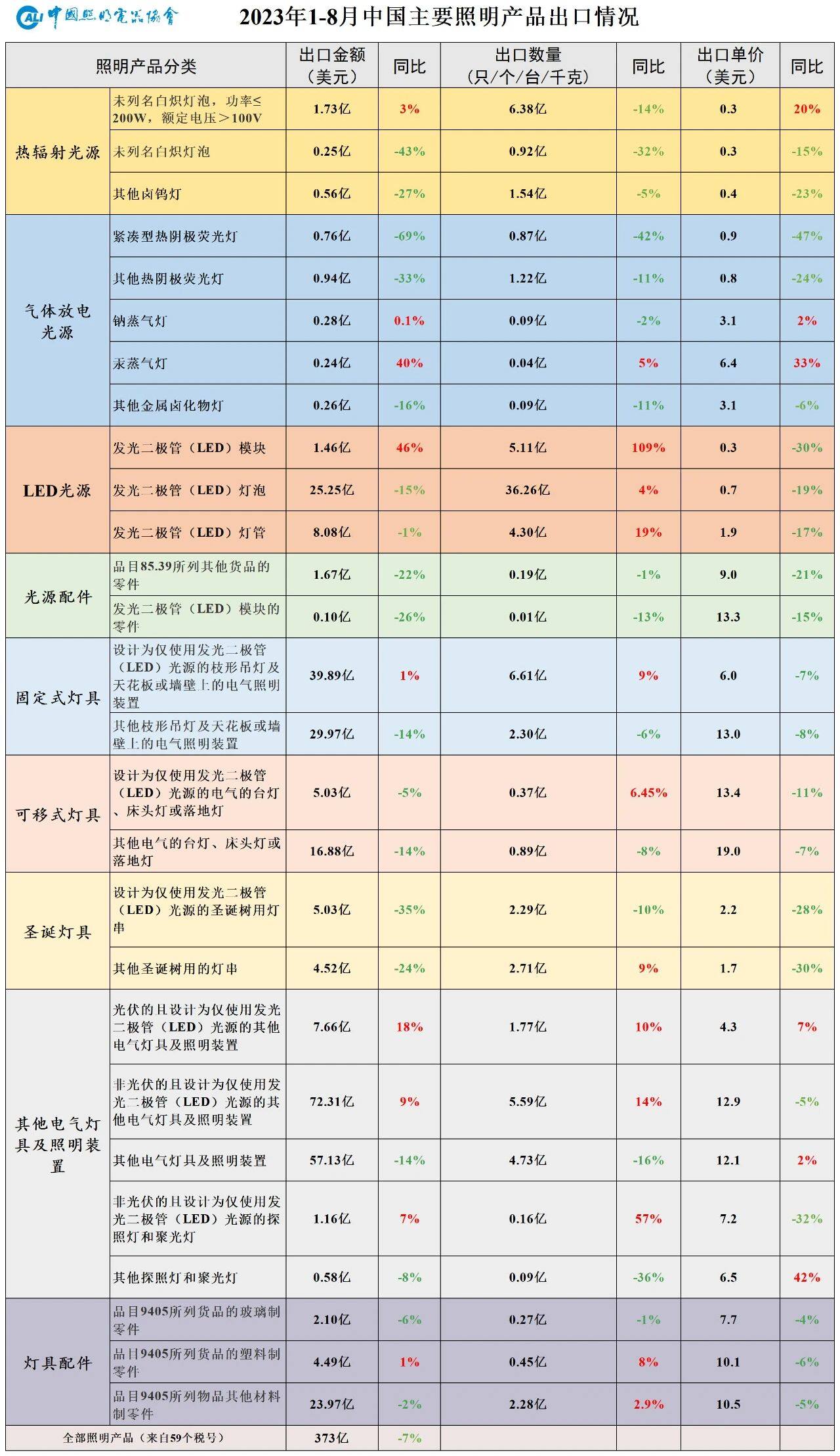 本文对2023年1-8月照明行业出口情况进行简要介绍,更详细的分析将刊登在中国照明电器协会会刊《中国照明》。