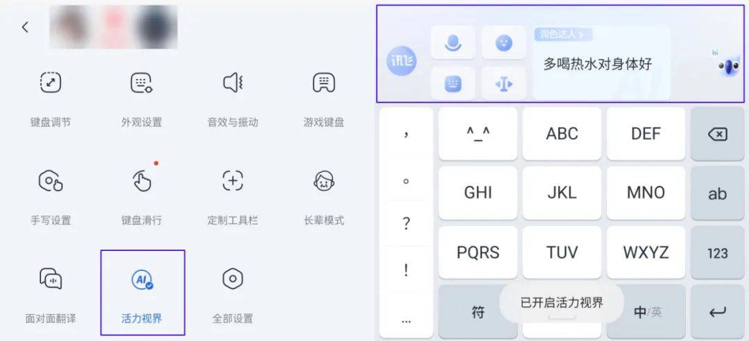 此外,讯飞输入法键盘合理区分输入和推荐,让用户信息查找、浏览更高效,还重新整合电商、搜索、翻译、AI校对等服务,让用户选择和操作更方便。“新布局”“新交互”“新整合”,多维创新下,讯飞输入法整体性能和效果让人眼前一亮。作为全新的设计——“活力视界”支持卡片功能的自由组合,能够让用户获得Feed流式的交互体验。