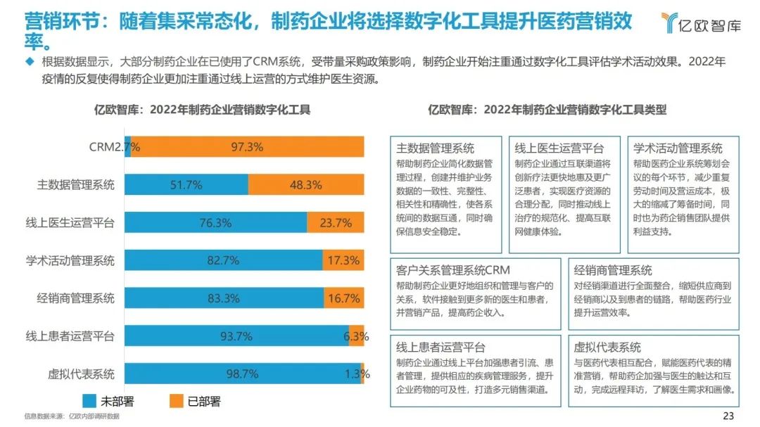生产环节:在集成层和监管层,未超过半数的制药企业进行了数字化转型升级,医药工业化程度仍需深入