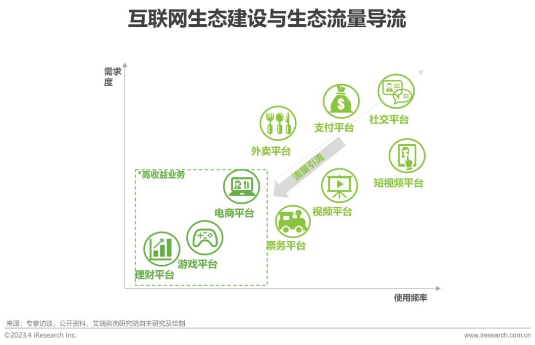 随着大数据、人工智能、云计算等前沿技术在互联网领域的成熟应用,互联网企业充分发挥其自身技术能力优势,将新技术在数据分析、模型搭建、信息保护等方面的数字化能力应用于金融服务领域,为银行传统“存、贷、汇”业务带来服务模式与运营方式的革新。在技术赋能金融业务的同时,互联网企业在金融领域的探索与技术革新对于商业银行原有业务板块与市场份额带来了不小的冲击,金融“换”媒浪潮逐步动摇银行在金融领域的市场地位。除此之外,互联网企业在生态能力建设与生态资源整合方面拥有先天优势,有能力和资源将在高频高需平台获取的用户流量迁移至高收益的电商、金融板块,从流量入口端侵蚀银行银行客户资源,导致商业银行从流量端口开始就存在流量锐减的问题,进一步影响了银行整个生态体系业务的流量和业务收益,将互联网巨头在流量方面优势逐步扩大到更深层的高收益业务领域。