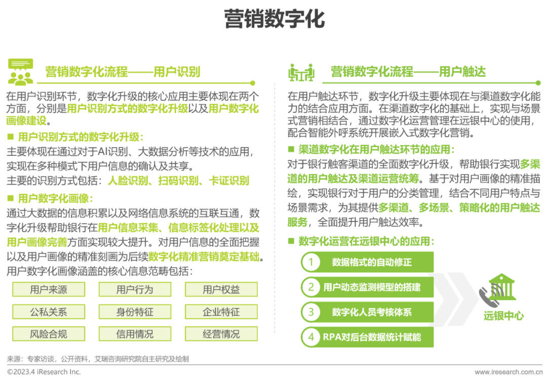 用户识别阶段的升级核心是用户身份确认与数字画像建设;渠道数字化是用户触达环节数字化升级的基础