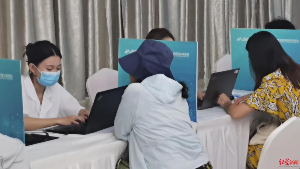 当天,红星新闻记者在现场看到,从门口的AI医生义诊报到处至问诊室,许多患者正排队等待。走进问诊室,现场有7个科室、8个问诊台,包括两个心内科、泌尿科、骨科等。每个问诊台都配备有一名医生助理,负责将患者的病症以文字形式传递给“AI医生”MedGPT,同时真人医生在问诊系统内也会同步得到患者信息。