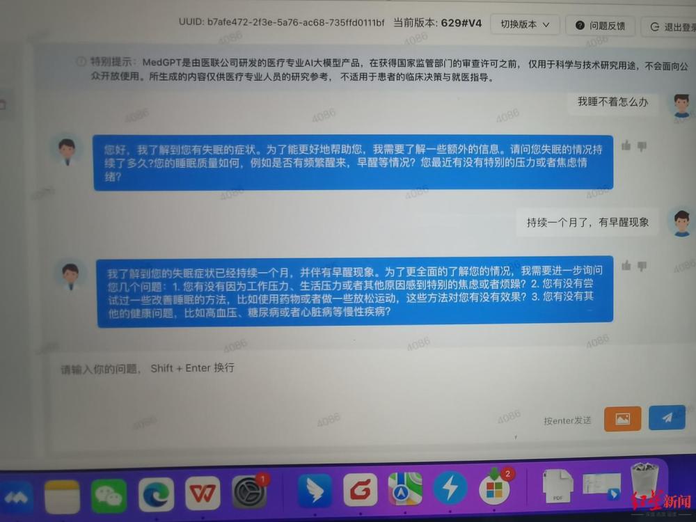 工作人员告诉记者,MedGPT的问诊过程是模仿真人的思维结构,就像一棵树,它的可能性很多,通过患者的反复提问中,排除无用枝桠后,在重点“枝桠”上进一步确定最终的“树梢”。“它可以识别文字中的错别字,但对于‘孃孃’等四川方言或其他地区方言文字,‘AI医生’暂无法识别”。
