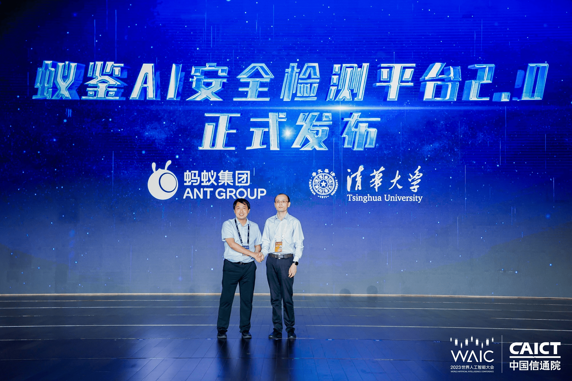 (图:蚂蚁集团联合清华大学共同发布AI安全检测平台“蚁鉴2.0”)