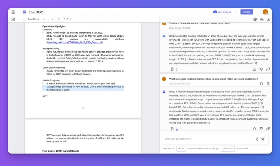 在 ChatDOC 们擅长的任务中,我们也可以通过优化提示语(Prompt)获得更理想的答案。以下是几个亲测有效的方法: