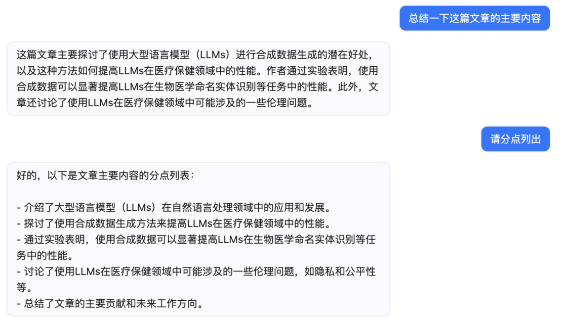 另一个比较刚需的场景是提炼、概括重点内容,因此对于上述文档,我又测试了一个摘要性问题:
