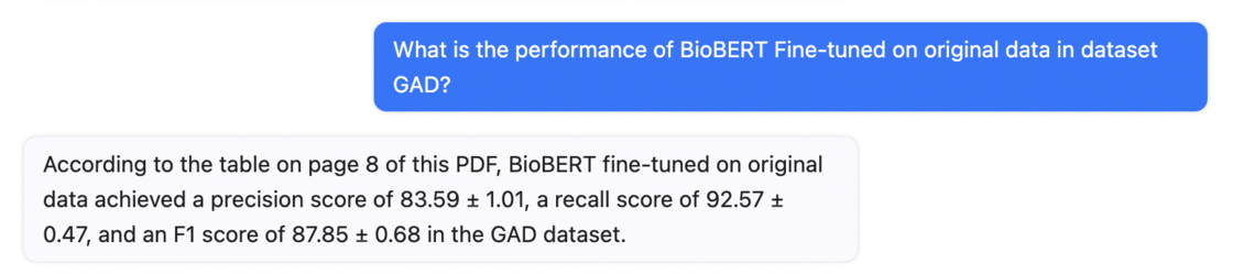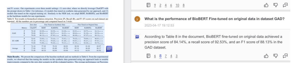 为了测试准确度,我分别在四个软件上传了同一份学术论文,对其中的实验数据进行提问。