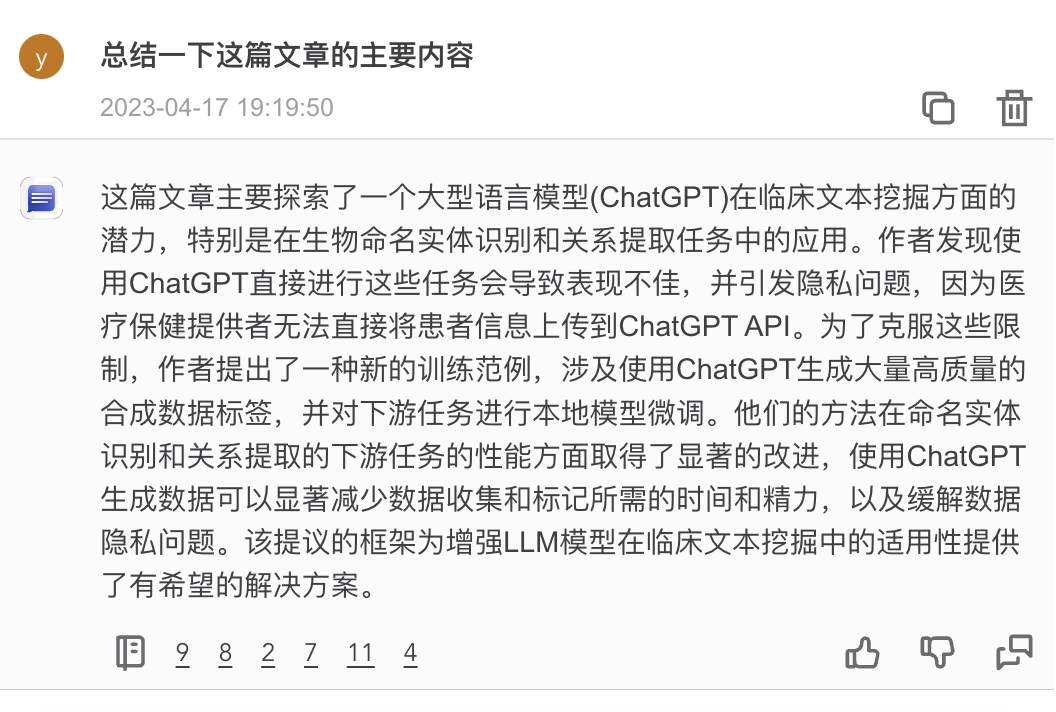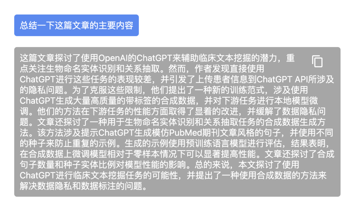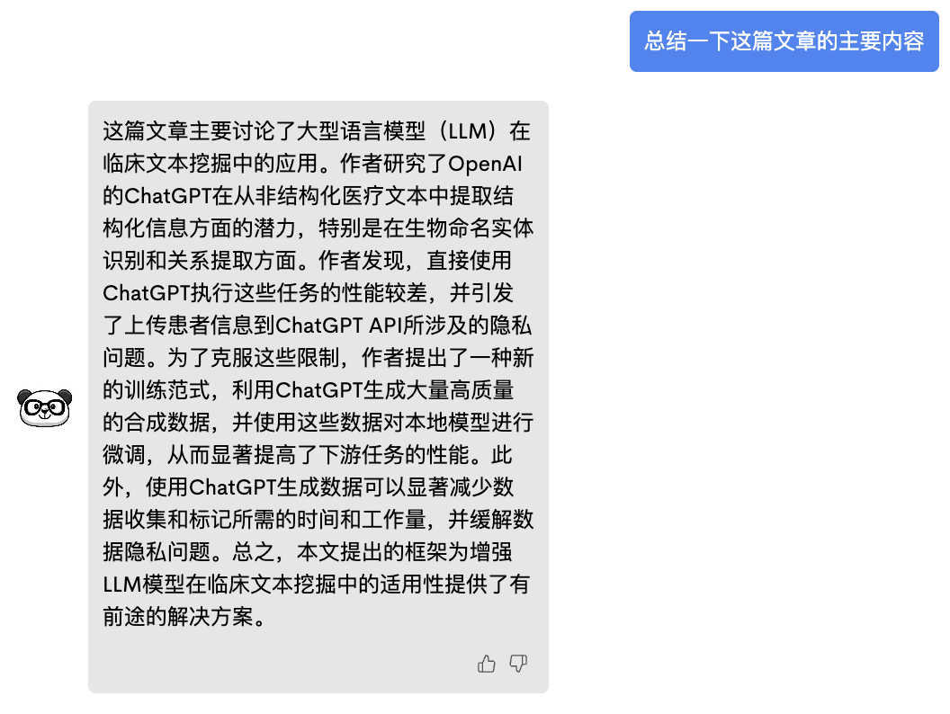ChatDOC:表现不错,给出了有信息量的摘要。