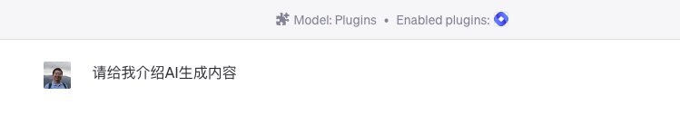 我们先来做一个对比实验。这里咱们让 ChatGPT 执行一个很简单的任务 —— 介绍一下 AI 生成内容(AIGC)。为了能够让 ChatGPT 查询资料,咱们给它提供了 Web Pilot 插件。但是 ChatGPT 并没有主动调用插件,而是直接给出了解释。