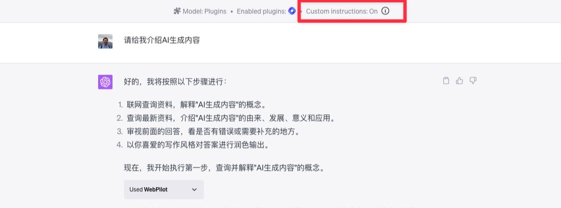 这样一来你就能明白,为什么同样的一个简短指令,有了 Custom Instructions ,输出结果发生了显著变化吧?