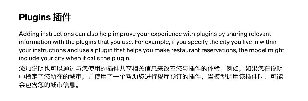 例如你通过 Custom Instructions 告诉 ChatGPT 自己所在城市,它后续调用插件的时候就会用上这个信息,寻找餐厅时会更加聚焦,提升准确度和效率。这当然会让你的生活更加方便。只不过就像我们对大数据应该保持足够警惕一样,你也需要了解这些信息的提供给 ChatGPT,也会给你自己带来的潜在影响。